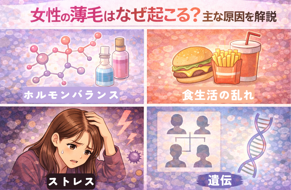 - 女性の薄毛が起こる主な原因